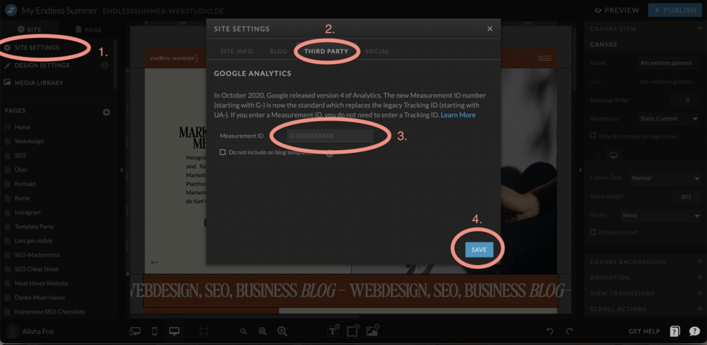 Google Analytics 4 in Showit einbinden